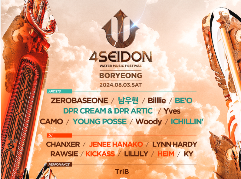 포세이돈 워터 뮤직 페스티벌은 다양한 DJ와 아티스트들이 참가하는 대형 뮤직 페스티벌로, 물과 음악이 어우러진 화끈한 여름밤을 즐길 수 있는 자리입니다.